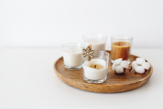 2. 保冷剤の上にロウソクを立てて、周りを小物で飾り付けして完成です。