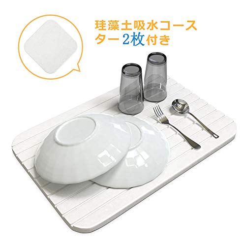 天然素材である珪藻土の水切りマットは、濡れた食器の水分を素早く吸収し、蒸発させることができます。カビが生えにくく、半永久的に使用可能。