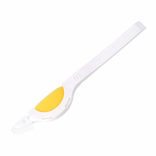 トイレマジックリンなどの中性洗剤をふきかけて、歯ブラシで汚れをこすり落とします。 - 水洗いする